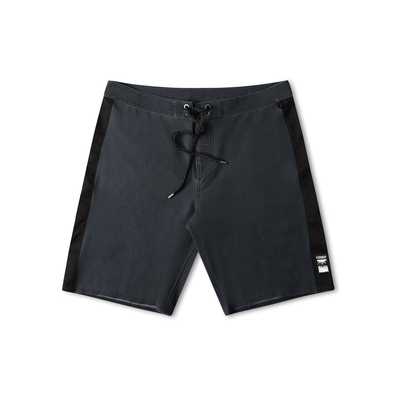 Constructed from a premium polyester spandex blend (90% polyester 10% spandex) 4- way stretch fabric with a pigment print and vintage wash finish. Delivered in the standard 19" trunk fit featuring signature velcro back patch pocket with Former webbing and eyelet, drawcord closure with Former branded metal aglets, elastic key loop and fixed waist.