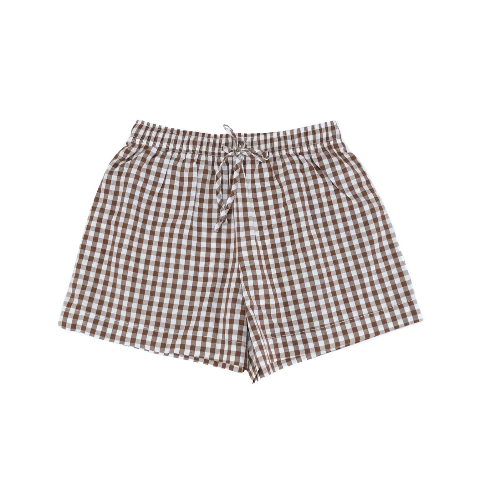 A relaxed over-swim short in an airy gingham print, featuring an elastic waistband with an adjustable drawcord for all-day comfort. Finished with Rhythm trims.